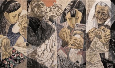 老一輩女藝術家中,周思聰、王迎春等人的成就尤為引人矚目。她們具有女性藝術家少有的大視野和大氣魄,其作品一直關注人類社會面臨的共同問題,如戰爭、建設、家園、土地等等。她們在處理這些題材時駕輕就熟,從選題到立意,從畫面結構到具體人物塑造,從場景控制到細節表現,頗具開創性,將高超的現實觀察力與藝術表現天賦完美融合。