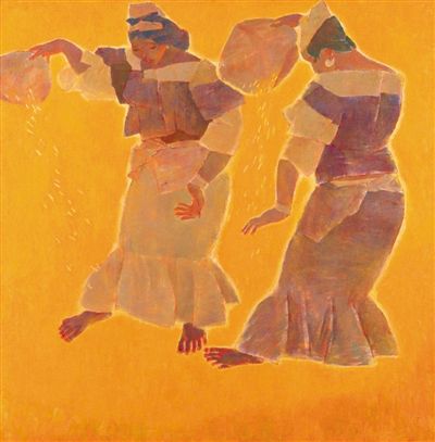 鷗洋、龐濤、何韻蘭是老一輩女性藝術家中新形式的開拓者。鷗洋不顧同行勸說,開始“意象油畫”的探索。她筆下的女性和花卉柔美清澈,層次豐富,重視肌理效果,筆觸的自由揮灑,形與色的層疊照應,就像河流中水波互相撞擊、交匯一般,呈現出不同于西方油畫的東方美。龐濤和何韻蘭的探索,重在從傳統文化或自然意象中提取母題,以平面化和抽象化的方式,表現歷史的啟示和生命的色彩。這些優秀女藝術家的作品境界更加超脫。