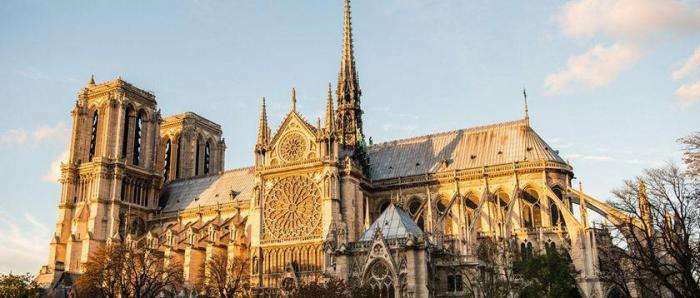 側(cè)面的巴黎圣母院在2019年經(jīng)歷大火,主體的石基部分保存完好,但屋頂不幸罹難,被燒去了部分。(圖片來自網(wǎng)絡(luò))