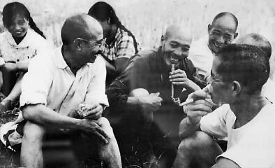 柳青(前排左一)與皇甫村農民在一起