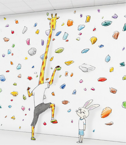 最開始畫的大概就是上面那個戴著耳機的兔子的插畫吧。我畫得比較多的是長頸鹿、鱷魚等以“過長”為特征的動物,此外也畫了一些類似“小雞仔——成年雞”那樣的動物,它們出生后能在短時間內長大,在成長過程中外觀、顏色會發生顯著改變,也就是說它們成長的時間尺度與人類完全不同。把這種動物的理所當然融入我們人類理所當然的日常生活,由此產生的反差能使插畫變得更加生動有趣。