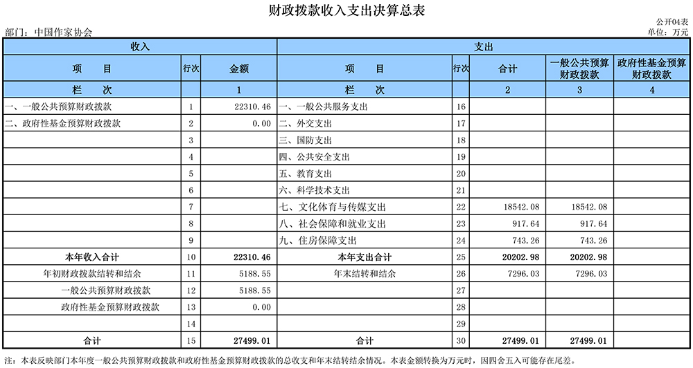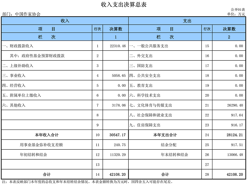 中國作家協會2018年部門決算包括中國作協本級決算及所屬11個事業單位決算,同比不變。