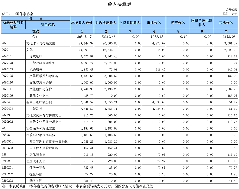 八、文化體育與傳媒(類)文化(款)一般行政管理事務(項):指中國作協本級組織作家深入生活等各項支出。