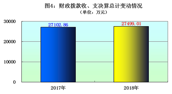 2018年度財政撥款收、支總計27499.01萬元。與2017年相比,財政撥款收、支總計各增加396.15萬元,增幅1.46%。