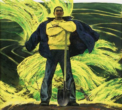 敏銳捕捉與表現(xiàn)改革開放給中國社會帶來的盎然生機(jī)與活力,是該題材美術(shù)創(chuàng)作的另一個特點(diǎn)。改革開放激活了全社會促發(fā)展、謀幸福的無限活力。從城市到鄉(xiāng)村、從工廠到田野,到處生機(jī)勃勃。例如,詹建俊油畫《潮》,以象征的手法、具象的語言,表現(xiàn)了中國農(nóng)民在改革開放春風(fēng)中迸發(fā)的激情。廣廷渤油畫《鋼水·汗水》,將工人為國家經(jīng)濟(jì)發(fā)展奉獻(xiàn)全部的精神表現(xiàn)得形象生動。特別值得一提的是,改革開放為民族地區(qū)的發(fā)展帶來新機(jī)遇和新活力,從雪域高原到北國草原,從天山南北到云貴之巔,改革開放背景下民族地區(qū)的自然景色、民俗風(fēng)情、人民生活、社會景況,一直是美術(shù)工作者熱衷表現(xiàn)的題材。