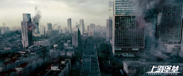 就這個(gè)角度來看,《上海堡壘》可以說是一下子走出去一大步。一直以來,出于各種規(guī)則或者潛規(guī)則,國產(chǎn)電影都盡量回避具體的城市名字。《上海堡壘》這一次非但做到了城市名稱完全實(shí)化,而且把上海的地標(biāo)建筑毀了個(gè)十足過癮。甭管是外灘這一邊的萬國建筑群,還是靜安寺啥的,都煙火紛飛千瘡百孔。在電影里呈現(xiàn)出這樣一種熟悉畫面的陌生模樣,有一種更強(qiáng)烈、更直接、更刺激的美感。尤其是東方明珠塔附近的江面上出現(xiàn)一個(gè)大坑,湯臣一品的房子一棟接一棟塌進(jìn)去,這畫面比過去欣賞好萊塢電影里的任何一處建筑被毀,都更能撩人心弦。