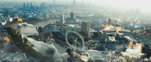 看著人類辛苦創(chuàng)造出來的城市文明被毀滅,這是外星人入侵、世界末日這一類災(zāi)難性科幻電影的獨(dú)特魅力。不得不承認(rèn),欣賞毀滅,這件事是有相當(dāng)強(qiáng)烈的快感的。過去這二十年,CG特效的成熟,讓好萊塢的科幻電影為我們提供了一次又一次這樣的快感。當(dāng)年在《獨(dú)立日》里面,白宮被外星飛船給轟成碎片,這一幕在當(dāng)時(shí)可以說是震撼之極。打這以后的好萊塢電影可以說是一發(fā)不可收拾,基本上每逢大片,都要?dú)鐐€(gè)把美國的地標(biāo)建筑。國會大廈、白宮這些自不必說,最慘的非那座金門大橋莫屬,在電影里被毀滅了一次又一次。