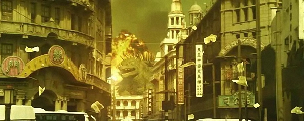 遺憾的是,由于各種獨(dú)特的原因,中國的各種建筑一直以來都沒能很好加入到好萊塢電影的這種毀滅大合唱里面。在《變形金剛2》的開頭,原本有一個(gè)擎天柱從東方明珠塔上跳下來的鏡頭,結(jié)果在公映的版本里面這個(gè)鏡頭剪掉了。影片第一場戲本來是汽車人和霸天虎在上海高架路上鏖戰(zhàn),結(jié)果字幕被含糊其辭改成了中國某城市。反倒是在日本拍的《哥斯拉之終極戰(zhàn)役》(2004)里面,有一場戲是外星人放出各種不同的怪獸襲擊地球上的各大城市,其中有一只怪獸襲擊的是上海,可惜日本東寶公司出品的《哥斯拉》至今仍堅(jiān)定保持模型特效的原始手法,怪獸襲擊上海的畫面粗陋不堪。