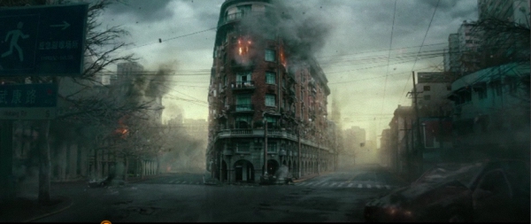 《上海堡壘》先行預(yù)告片中出現(xiàn)的上海城市被毀的畫面,這是上海武康路那片
