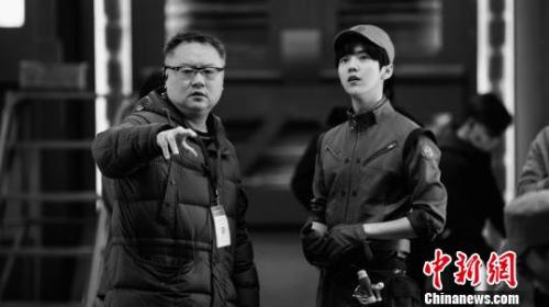 資料圖:《上海堡壘》拍攝現場,滕華濤導演給演員鹿晗講戲。