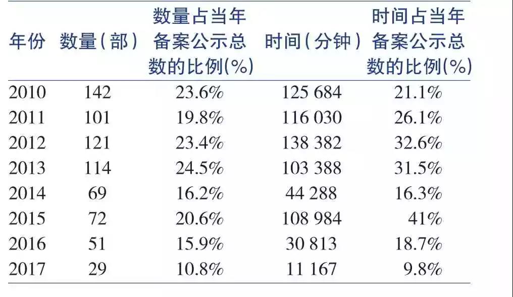 表1 2010年—2017年國(guó)產(chǎn)科普教育題材電視動(dòng)畫(huà)片制作備案公示情況