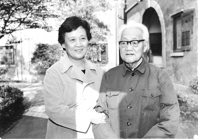 20世紀(jì)90年代初,諶容(左)與巴金在巴金家中