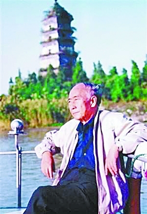 1991年,汪曾祺在故鄉高郵運河上