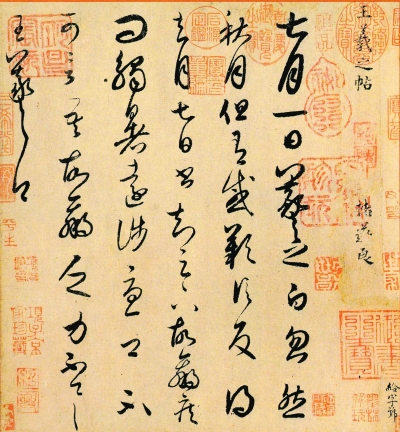 王羲之草書手札《秋月帖》摹本,又稱《七月帖》,麻紙,縱27.7 厘米,橫25.8厘米,現藏臺北故宮博物院。