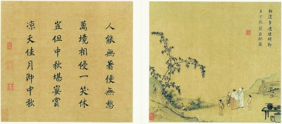 馬遠《月下把杯圖》題詩,絹本設色,縱25.5厘米,橫25.7厘米,現藏臺北故宮博物院。