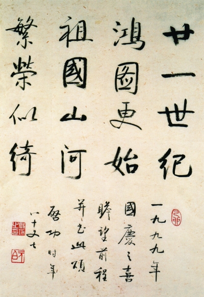 歷史的腳步走到1949年,國制鼎革,天地重開,新中國巍然屹立于世界東方,具有古老傳統的書法開始邁進新的歷程。新中國書法是古老中國書法的發展,作為中華民族獨特的藝術,它應該也必須承繼歷史傳統,又因前所未有的社會文化環境和條件發生著新變,形成自身的特點和發展脈絡。新中國、新社會、新制度、新思想、新觀念、新科技、新傳媒,這是一個嶄新的時代。新中國70年,為人類歷史的進程和結構創造了全新的圖像,樹立了舉世矚目的偉大里程碑。古老的書法走進新中國,既經歷了以往時代未曾經歷的考驗,又欣逢以往時代未曾遇到的發展機遇。新中國70年的書法,在考驗中生存和發展,一步一個腳印,與時俱進,以其特有的韌性和頑強的生命力延展著中華民族的文脈,彰顯著中國文化的身份,體現著中國文化的自信,表現著特有的審美意趣。國家興盛,書法復興。國運蒸蒸書運昌,書法的命運與國家的命運緊密相連。新中國書法70年的發展歷程,從一個側面反映了中華民族偉大復興的歷史進程。正是在山重水復柳暗花明的行程中,新中國書法留下了前行的腳印、探索的痕跡和發展的脈絡。