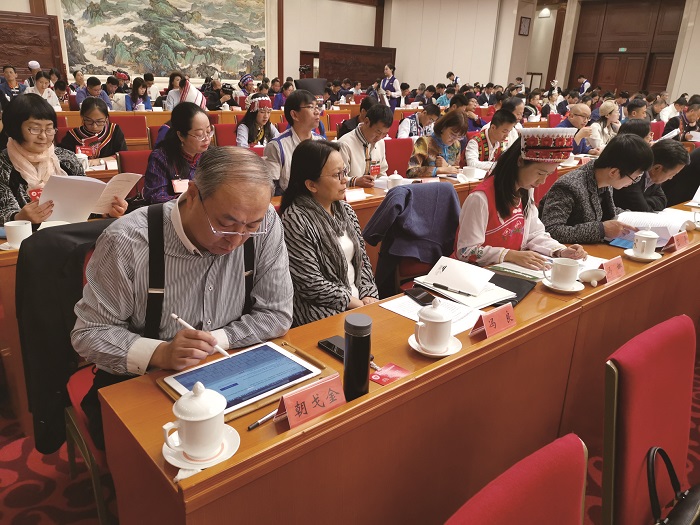 西藏文聯(lián)主席扎西達(dá)娃參加過五次全國少數(shù)民族文學(xué)創(chuàng)作會(huì)議,他說,從當(dāng)年的文學(xué)新人到現(xiàn)在的作協(xié)主席,從當(dāng)年的普通代表到今天的領(lǐng)隊(duì),他親歷和見證了30多年來中國少數(shù)民族文學(xué)創(chuàng)作的發(fā)展歷程。這次會(huì)議的主題和氛圍給他最大的感受是:從以往注重和強(qiáng)調(diào)各少數(shù)民族文學(xué)單一族群敘事低吟淺唱的獨(dú)奏曲,到今天匯聚成唱響中華民族大團(tuán)結(jié)、促進(jìn)各民族交往交流交融、構(gòu)筑中華民族共有精神家園的宏大合唱和交響樂章。這是新時(shí)代的文學(xué),更是中國夢(mèng)的寄托。從各民族代表一張張年輕的臉龐中,能感受到他們的青春陽光,感受到少數(shù)民族作家隊(duì)伍在不斷壯大和成長。改革開放40年,特別是黨的十八大以來,我國少數(shù)民族文學(xué)事業(yè)撐起了中國文學(xué)風(fēng)景的一片高地,但文學(xué)之巔,山高路險(xiǎn),我們?nèi)孕枧Γ瑘F(tuán)結(jié)各民族作家,共筑中國文學(xué)輝煌的高峰。