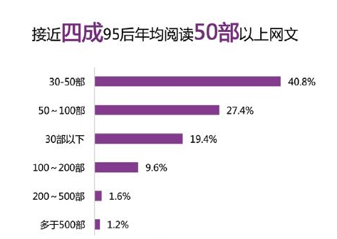 首先,“快讀”削弱網(wǎng)文市場(chǎng)的馬太效應(yīng)。應(yīng)當(dāng)承認(rèn),在過(guò)去很長(zhǎng)一段時(shí)間里,網(wǎng)絡(luò)文學(xué)市場(chǎng)一直處于一種“寡頭”的狀態(tài):一方面,大神憑借“明星效應(yīng)”能夠輕易吸引足量的讀者,這令他們的作品得以廣泛傳播,繼而在網(wǎng)文市場(chǎng)上立于不敗之地;而與之相對(duì),普通作者即使作品優(yōu)秀,也會(huì)因“名氣不夠” 而遭到冷落,還沒(méi)競(jìng)爭(zhēng)便輸在了起跑線上。可見(jiàn),當(dāng)民眾閱讀速度較低,他們?cè)谶x擇網(wǎng)文時(shí)便會(huì)優(yōu)先考慮“大神”之作而非“優(yōu)秀” 之作,這無(wú)疑會(huì)損傷一般作者的創(chuàng)作動(dòng)力,造成日趨嚴(yán)重的“馬太效應(yīng)”。慶幸的是, 這種趨勢(shì)很有可能會(huì)因 Z 世代的進(jìn)駐而得到扭轉(zhuǎn)。據(jù)調(diào)查(見(jiàn)圖 2),“95 后”在“消化”網(wǎng)文的速度上可謂驚人:有4成以上的“95后” 每年閱讀 30—50 部網(wǎng)文,而近三成則達(dá)到了每年 50 部以上。誠(chéng)然,“快讀”在一定程度上意味著“囫圇吞棗”,但從另一個(gè)角度說(shuō),忽視冗長(zhǎng)又無(wú)意義的贅述,只將精力與興趣放置在“爽點(diǎn)”與“癢點(diǎn)”上,這或許才是閱讀網(wǎng)絡(luò)文學(xué)的“正確姿勢(shì)”。更重要的是,在“快讀”的影響下,大神之作不再是用戶唯一的選擇,Z 世代可以放眼整個(gè)網(wǎng)文市場(chǎng)來(lái)找尋“遺珠”,甚至曾經(jīng)被懸置多年的“存 貨”也有了被“臨性”的可能,當(dāng)網(wǎng)文市場(chǎng) 不再被大神作品壟斷,預(yù)示著良性的競(jìng)爭(zhēng)生態(tài)即將開(kāi)啟。