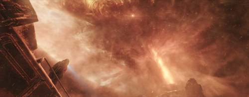 第二幕里,電影把原著小說中與木星擦肩而過的一個小片段改編為地球將受到木星潮汐力的影響,從而引發了災難。在大的故事背景和劇情設定下,電影在主角身上加了另外一條敘事線——兒子劉啟與航天員父親劉培強、駕駛員姥爺,以及沒有血緣關系的妹妹朵朵之間的親情。這種雙線敘事策略,在改編過程中相對更好把握,此前邁克爾·貝執導的《世界末日》就是一個范例。而且,講述親情的合家歡主題正好契合了春節檔觀眾的觀影心理需求。
