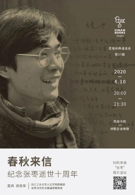 “張棗是個好老師。”多年以后,顏煉軍已從中央民族大學博士畢業,也走上講臺,成為大學教授。2020年4月10日,在思南書局組織的“春秋來信——張棗逝世十周年”的線上紀念活動中,顏煉軍作為嘉賓出席,與一群來自五湖四海的讀者共同懷念他的老師張棗——一位“中國當代詩歌的奇才”(《悲情往事》,北島)。