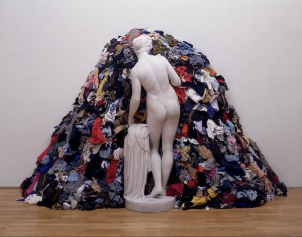 “藝術家不再位于被剝削利用的行列,他們成為了游擊隊員,能夠選擇自己的展場,并且擁有移動所賦予的優勢,”切蘭曾這樣說道,他強調了貧窮藝術的革命性語境。貧窮藝術的干預主要發生在都靈和羅馬,這些藝術家的作品看上去都不像藝術。例如在米開朗基羅·皮斯特萊托(Michelangelo Pistoletto)的標志性作品《破衫中的維納斯》中,他在維納斯雕塑面前堆滿了破舊衣物,這兩種截然不同的物體之間存在著內在的張力,使觀者思考作品所引起的眾多矛盾,例如古典與當代、單色與彩色、硬與軟、珍貴與普通、高調和日常使用。在馬里奧·梅爾茨(Mario Merz)的作品中,通過創作出霓虹燈穿透日常物品的裝置,反映出他對探索從有機到無機能量傳遞的渴望。