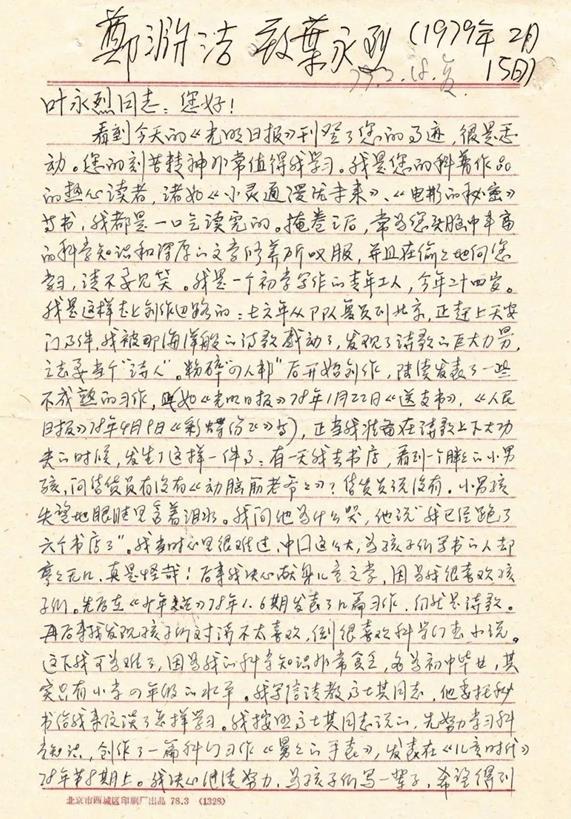 1979年,讀者鄭淵潔致信葉永烈(圖片來源于網絡)