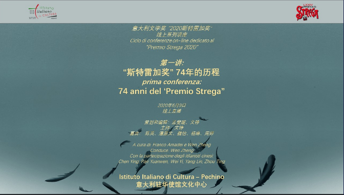 6月9日,由意大利使館文化中心主辦的意大利文學(xué)“2020斯特雷加獎(jiǎng)”線上系列講座第一講—— “斯特雷加獎(jiǎng)”74年的歷程在線上開講。到場(chǎng)嘉賓除意大利駐華使館參贊孟斐璇外,還有意大利語言文學(xué)學(xué)者、翻譯家文錚、魏怡、李婧敬和潘源文。不能到現(xiàn)場(chǎng)的陳英、楊琳、周婷以連線的方式參與講座。講座由文錚主持。