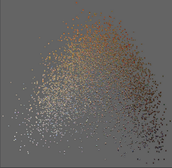 馬諾維奇教授將6000余幅印象派作品進行陳列。其中,相似度更高的作品更為靠近。圖中左下角的作品代表人們所熟知的印象派名作。我們可以看到,印象派中其實包含大量與這些名作風格迥異的作品。來源:《數據科學和數字藝術史》報告