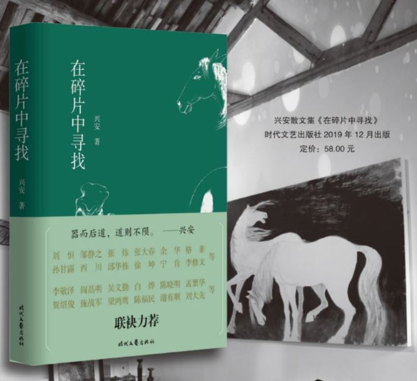 “白馬照月明,青山無古今”,這是興安在中國現代文學館舉辦的水墨畫展的題名,凝練地勾勒出畫展的主題,又在白馬、明月、青山的意象中透出遼遠和曠達的意境,顯示了興安浸潤在繪畫和文學中,通透了彼此的審美意蘊。在他的最新隨筆集《在碎片中尋找》的后記中,興安追溯他五年前重拾畫筆,開始水墨藝術創(chuàng)作時,用了如此的比喻:“如果繪畫是一顆美味的果實,那么文學便是一棵參天大樹。我就是攀援在樹杈上的一個懵懂少年,當我兩鬢斑白的時候,我終于摘到了那顆果實。”