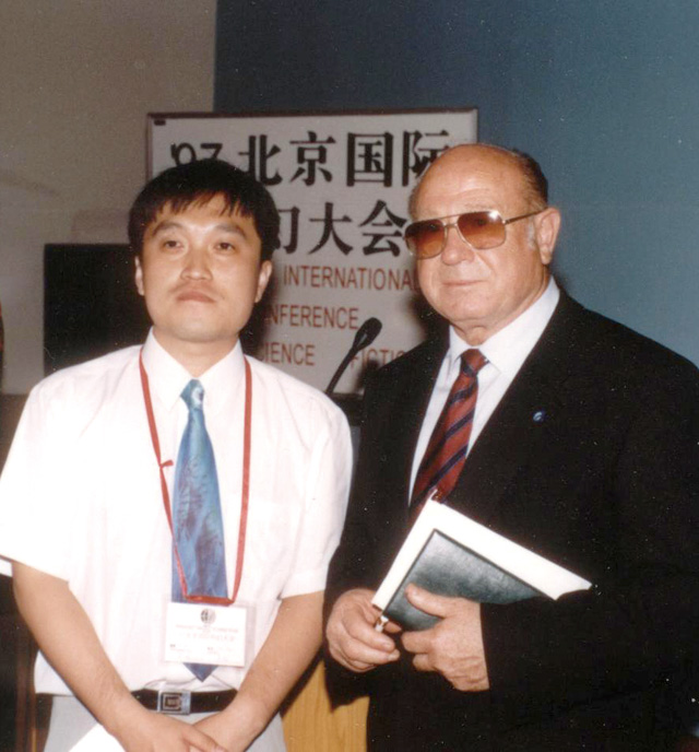 1997年吳巖與第一次太空行走的航天員列昂諾夫一起主持科幻會議