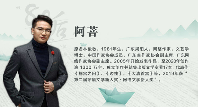 “回歸到文學該有的位置?!?文學不必要取悅大眾,不需要在公眾中去產生全民偶像式的人物,文學首先要是文學自己。身兼網絡作家和文學批評家的雙重身份,阿菩也在關注著文學本身的發展,在他心中始終有著一份對文學的敬畏。
