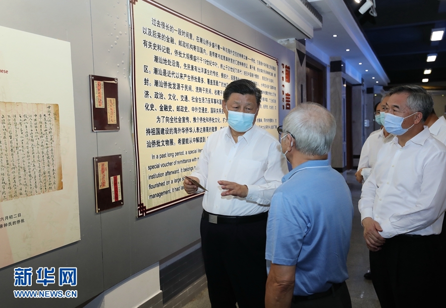 隨后,習近平參觀了具有潮汕僑鄉特色的僑批文物館。過去很長一段時間,海外華僑通過民間渠道將連帶家書或簡單附言的匯款憑證寄回國內,這些“僑批”成為研究近代華僑史的珍貴檔案。習近平聽取僑批歷史和潮汕華僑文化介紹。他強調,“僑批”記載了老一輩海外僑胞艱難的創業史和濃厚的家國情懷,也是中華民族講信譽、守承諾的重要體現。要保護好這些“僑批”文物,加強研究,教育引導人們不忘近代我國經歷的屈辱史和老一輩僑胞艱難的創業史,并推動全社會加強誠信建設。潮汕地區是我國著名僑鄉。汕頭經濟特區要根據新的實際做好“僑”的文章,加強海外華僑工作,引導和激勵他們在支持和參與祖國現代化建設、弘揚中華文化、促進祖國和平統一、密切中外交流合作等方面發揮更大作用。