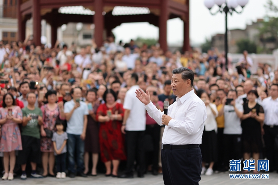 當地群眾和游客們見到總書記來了,爭相圍攏上來向總書記問好。習近平祝大家生活愉快、健康幸福。他指出,我國改革開放和經濟特區的建設同大批心系鄉梓、心系祖國的華僑是分不開的。我們即將全面建成小康社會、開啟全面建設社會主義現代化國家新征程,向第二個百年奮斗目標進軍。到本世紀中葉把我國建成富強民主文明和諧美麗的社會主義現代化強國,是海內外全體中華兒女的共同心愿。今年是經濟特區建立40周年,我特地來汕頭經濟特區考察調研,就是要向國內外宣示,中國共產黨領導中國人民將堅定不移走改革開放道路,奮發有為推進社會主義現代化建設,鍥而不舍實現中華民族偉大復興的中國夢。希望鄉親們攜手努力,共同奮斗!
