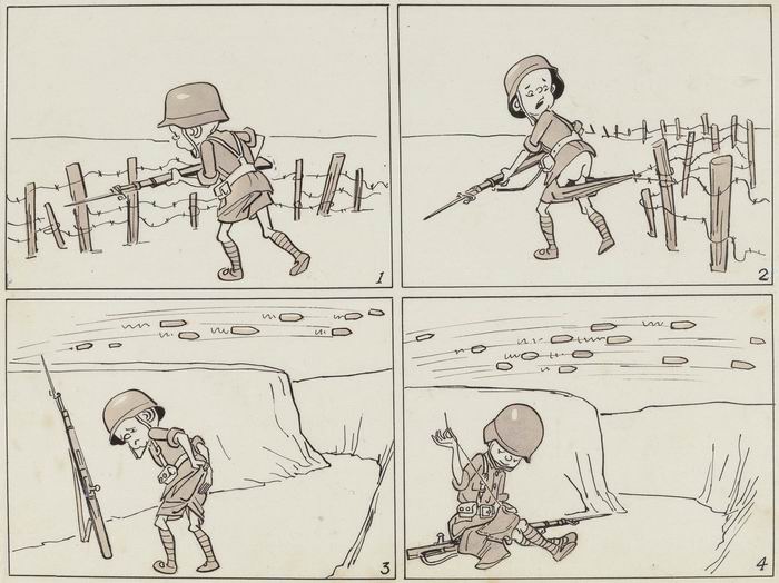 《三毛從軍記》很多源自我父親親眼所見,所以這套作品1946年在《申報》發表后,很多人都喜歡看。我父親沒有參過軍,但是曾多次到最前線慰問當時的抗日部隊,知道他們如何抗日、如何打仗的。《三毛從軍記》也是中國第一部軍旅漫畫,甚至后來好多人把他這部作品和捷克作家哈謝克創作的《好兵帥克》相提并論。而且,《三毛從軍記》是中國第一部沒有文字的長篇漫畫。