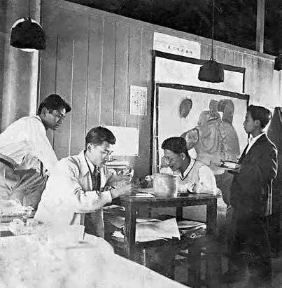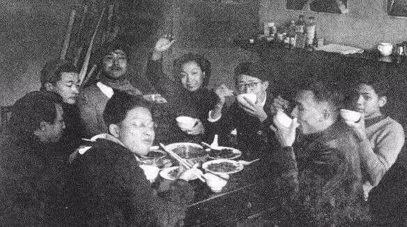救亡漫畫宣傳隊在創作 右起:張仃、胡考、張樂平、陸志庠