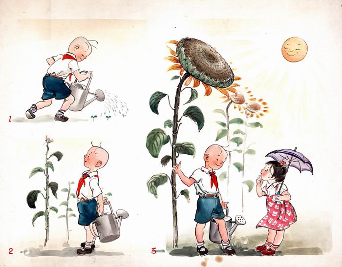 1949年初,宋慶齡創辦的中國福利基金會為救助流浪兒童,計劃與我父親一起舉辦一個關于三毛的義賣和展覽,并接受捐款成立“三毛樂園”專門幫助流浪兒童,讓他們有飯吃、有地方住、有書讀。1949年4月4日(當時的兒童節),在上海南京路大新公司(今市百一店)舉辦了一次展覽,我父親畫了30幅三毛的水彩畫進行義賣,當時30幅作品全部售完,最高的一幅是一位外國記者以800美元拍下,當時800美元是一筆很大的數目。展覽中上海商會的會長還主持舉行了募捐,所獲款項后來全部用于辦“三毛樂園”,這在當時也是一次有很大影響的慈善募捐的活動。