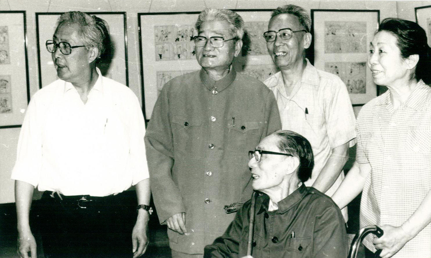 坐者:夏衍;立者(左起):華君武、張樂平、廖冰兄、郁風,攝于1983.6