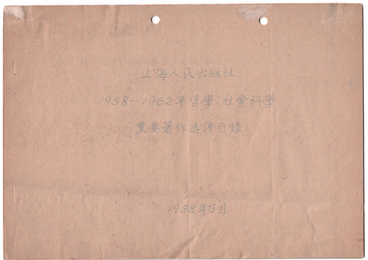 筆者統計了一下,“聯合版選譯目錄”共列出書目五百七十八種,其中上海人民出版社承擔五十五種,占到了將近十分之一;而筆者新近獲得的一份《上海人民出版社1958-1962年哲學、社會科學重要著作選譯目錄》(1958年3月,以下簡稱“滬版選譯目錄”)則表明,按照原計劃,上海人民出版社有意在這項工作中承擔更為重要的角色。