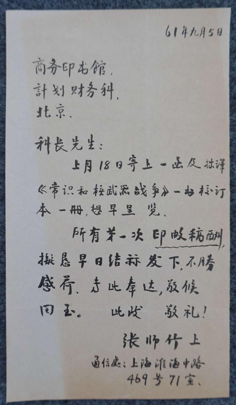 抄致:世界知識、三聯、商務、中華、人民文學、科學、法律、湖北人民出版社