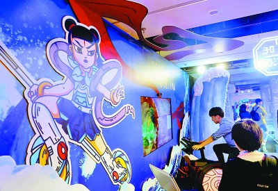 由上海美術電影制片廠、百度和豫園共同打造的“童年英雄AI幻想互動展”上,觀眾在參與互動體驗。本版照片均為新華社發