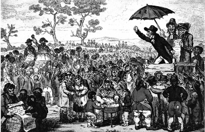 與法國漫畫直陳時(shí)弊相比,英國漫畫涉及內(nèi)容更為豐富。17世紀(jì)英國的漫畫多為黑白木刻,有不少描繪了英國內(nèi)戰(zhàn)的相關(guān)戰(zhàn)事;而18世紀(jì)的漫畫則多為彩繪,以套刻彩版印制,主要在版畫店出售,帶有商業(yè)營銷性質(zhì)。以18、19世紀(jì)之交為界,在此前后的英國漫畫主題發(fā)生了明顯變化,18世紀(jì)中后期漫畫多以社會生活為表現(xiàn)內(nèi)容,而在此之后的18世紀(jì)末、19世紀(jì)初的漫畫則多以政治活動為表現(xiàn)內(nèi)容。