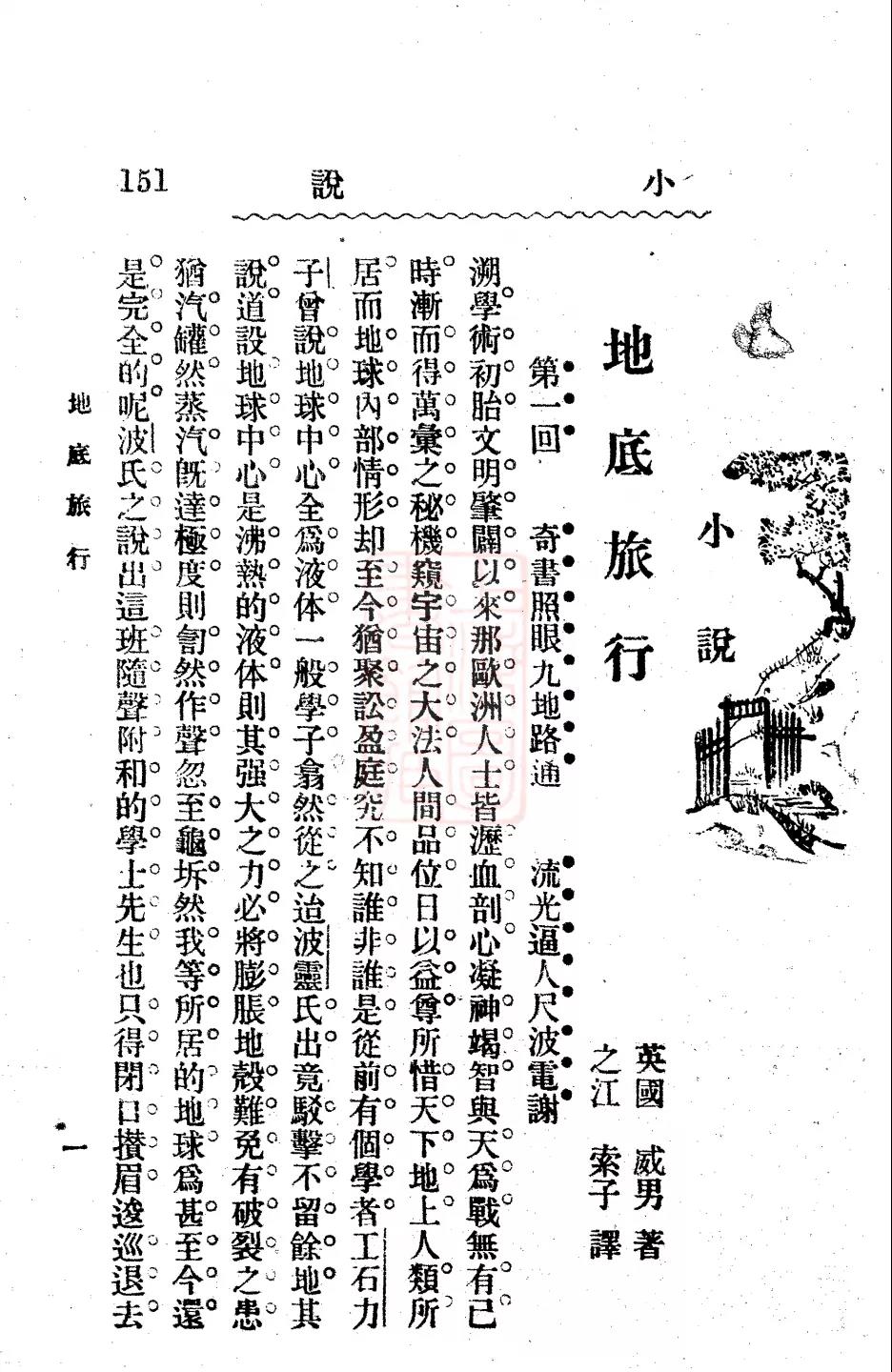 魯迅與科幻小說的關系,也是從1902年開始的。當年,他將凡爾納的小說《月界旅行》進行譯介。次年,魯迅繼續在《浙江潮》刊登新的凡爾納小說譯本《地底旅行》。《月界旅行》為章回體小說,除標題外,作者嚴格按照原文的內容進行翻譯,沒有像梁啟超那樣根據自己喜好進行名詞轉移,準確的翻譯風格恰當地傳遞了凡爾納《月界旅行》的基本精神。