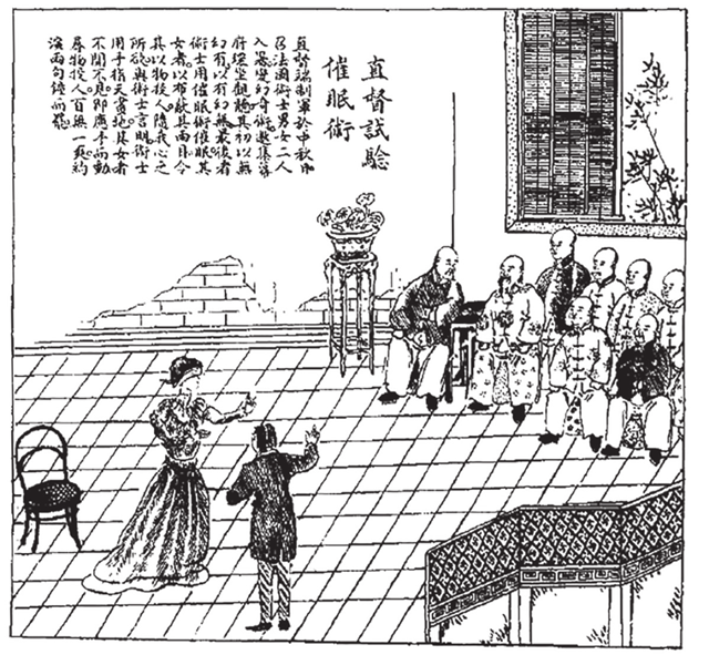 52 《直督試驗催眠術》,《圖畫日報》第69期,宣統元(1909)年九月初十日,第11頁。晚清頗多此類催眠術表演的新聞、廣告。《觀試驗催眠術續記》,《時報》,1905年11月28日,第4頁。