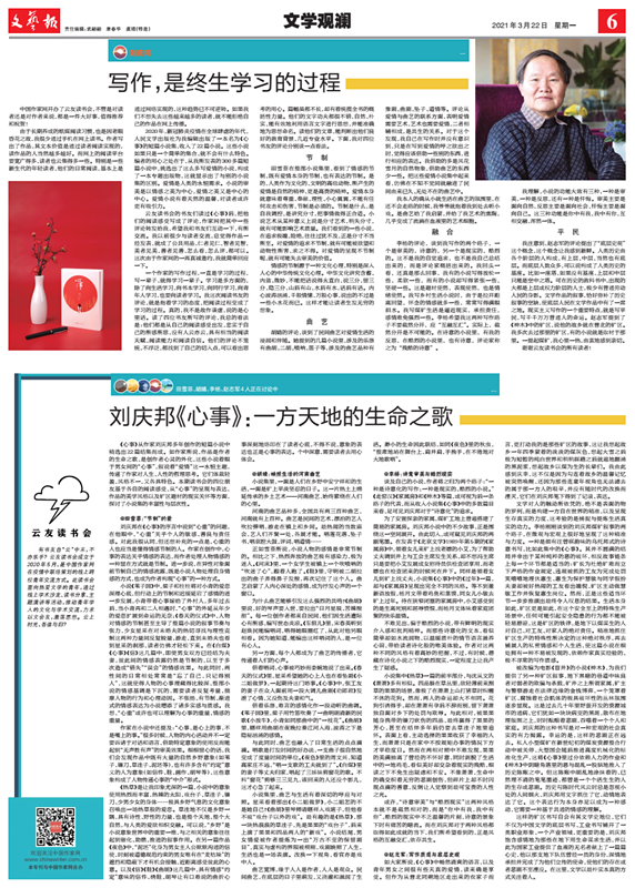 本文為劉慶邦對云友讀書會《劉慶邦<心事>:一方天地的生命之歌》一文的作家回復,發于中國作家網與《文藝報》合辦“文學觀瀾”專刊2021年3月22日第6版