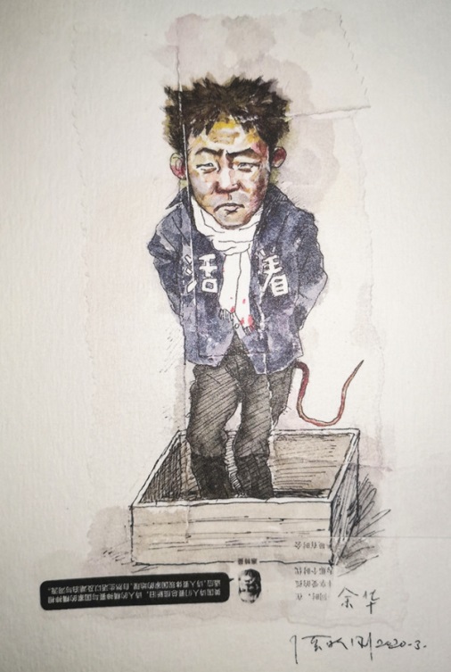 金赫楠注意到,《文城》隨書夾贈的書簽上印著一幅余華畫像,畫中余華的上衣正面赫然印著兩個醒目的大字“活著”——這是在暗示“活著”已經(jīng)同小說家余華徹底地互為表里? (書簽作品為藝術(shù)家張曉剛為余華創(chuàng)作的生肖鼠漫畫)