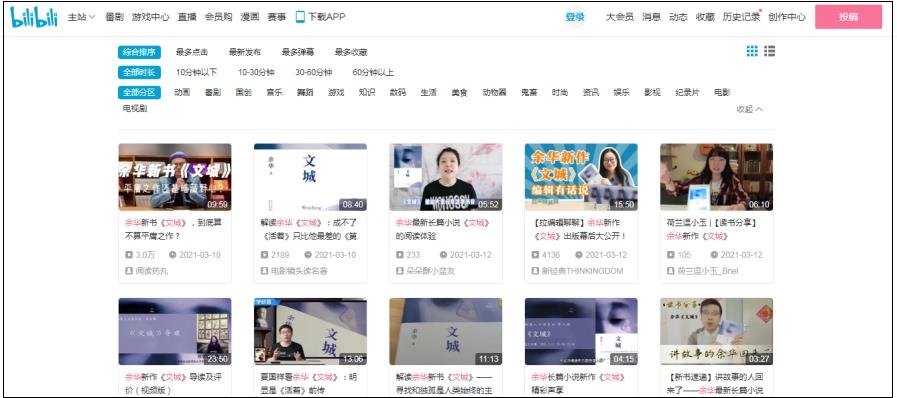 值得關(guān)注的當(dāng)然還有很多來自普通讀者的聲音,在微博、知乎、抖音、B站上,年輕受眾對這部余華新作也保持著極高的熱情,不僅有自媒體接連發(fā)布作品分享讀后感,還有圖書營銷號制作了“《文城》金句摘抄”視頻合集。網(wǎng)友們的回復(fù)也很精彩,有人說“好像所有主角的名字都帶‘福’字”,有人說“《文城》明顯是《活著》的前傳”。3月11日,“一點資訊”APP推出文化熱點專題,對《文城》進行整體介紹,匯聚了部分關(guān)于作品的正面、反面觀點,并允許用戶自由發(fā)布評論及讀后感言。3月12日,新經(jīng)典公司在B站上傳了“拉編輯聊聊”視頻“余華新作《文城》出版幕后大公開”,《文城》責(zé)編白雪出鏡和大家講小說編輯背后的故事,在視頻中白雪對書名、封面、印數(shù)、小說特點等方面都做了簡明扼要且適應(yīng)B站內(nèi)容輸出風(fēng)格的介紹。