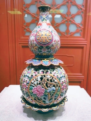 “清代,皇帝在年節或者舉行重大典禮活動時會賞賜王公大臣瓷瓶,其中以玉堂春瓶最具代表性。”呂成龍說。乾隆將“禮物”的規格定了——從宮中藏瓷中選定52件琢器和164件圓器當樣品。展覽中,歷朝的“禮物”擺成一排,每位皇帝的喜好一目了然。
