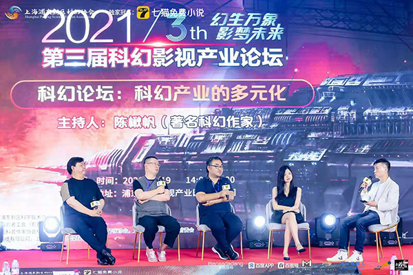 科幻作家陳楸帆(右)主持“科幻產(chǎn)業(yè)多元化”論壇