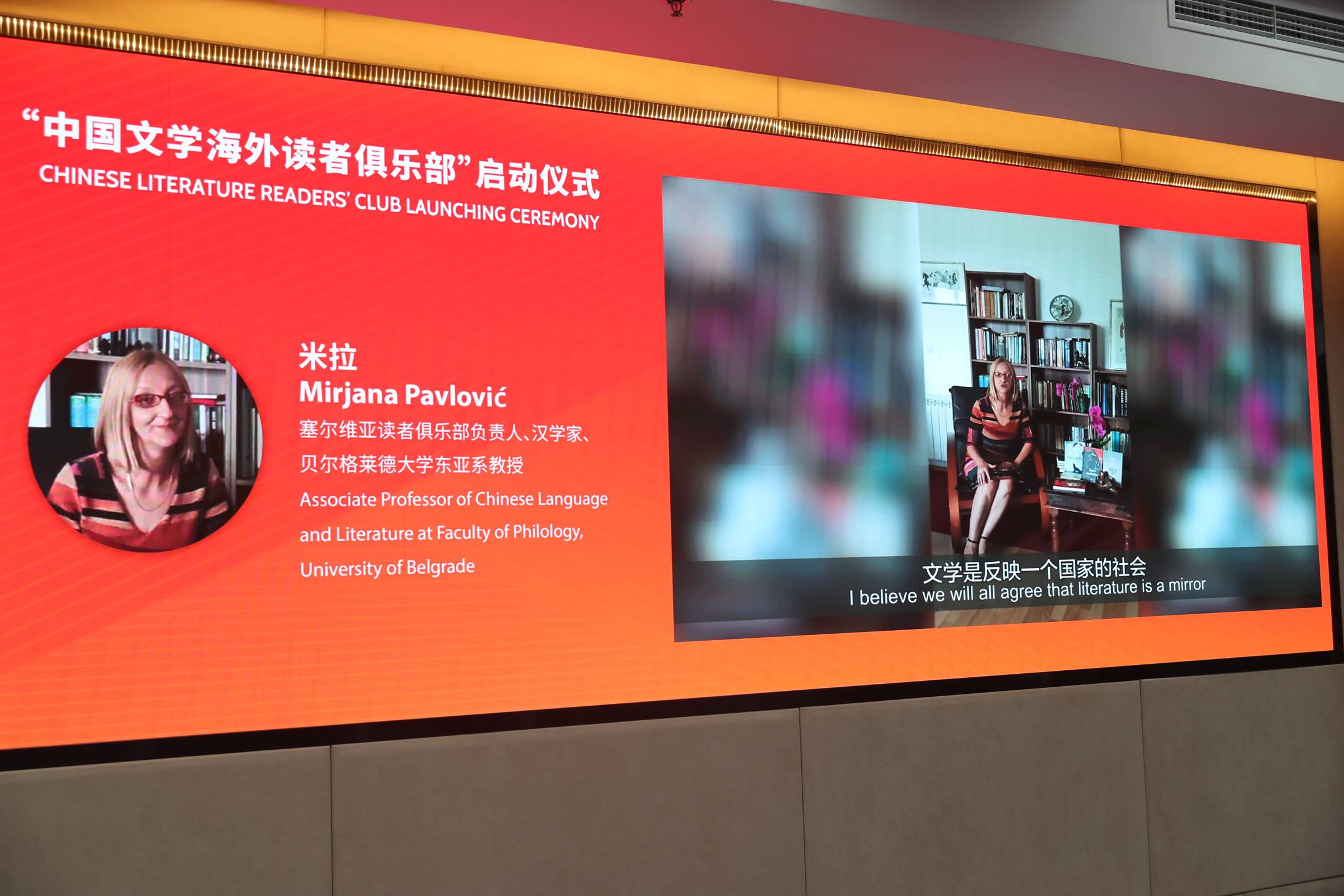 塞爾維亞讀者俱樂部負責人米拉(米爾婭娜?帕芙洛維奇)是塞爾維亞貝爾格萊德大學東亞系教授,主要講授中國當代文學和漢語-塞語翻譯。她在視頻發言中提到,文學作為反映一個國家社會和文化的鏡子,在了解其他國家的歷史、社會與文化方面一直發揮著重要作用?!爸袊膶W海外讀者俱樂部”的建立,將有助于對中國文學作品有著濃厚興趣的塞爾維亞讀者更好地了解喜愛的作家,這種跨文化對話必將加深中塞兩國之間的友誼。