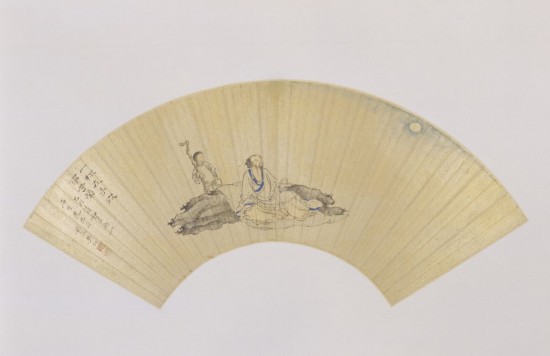 扇頁有自題:“一杯在手,世事等閑。乙酉清和月畫,似石生先生正。秣陵樊圻。”鈐“樊圻之印”白文印、“洽公”朱文印。“乙酉”是清乾隆三十年(1765年),樊圻時(shí)年50歲。